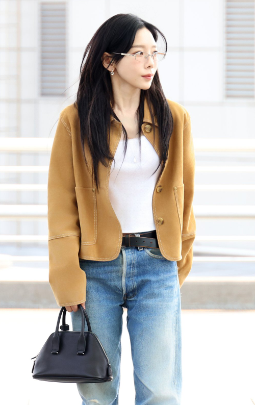 이날 태연은 스웨이드 재킷에 클래식한 데님 팬츠를 매치해 편안하면서도 트렌디한 공항패션을 선보였다. 특히 눈길을 끈 건 안경이었다. 태연은 젠틀몬스터와 메종 마르지엘라가 협업한 세 번째 컬렉션의 안경을 착용해 룩에 단단한 포인트를 더했다.